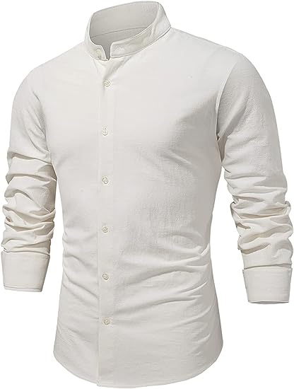 Our cotton linen long sleeve beach shirts for men are perfect for a summer casual style. With a loose fit and the ability to roll up the sleeves, this shirt offers versatility and can be worn with 3/4 sleeves or full sleeves. The band collar and open front design add a fashionable touch to this trendy piece.